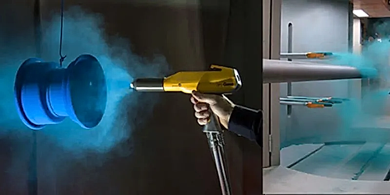 Elektrik yüklü toz boya partikülleri, boya tabancaları yardımıyla topraklanmış metal yüzeye püskürtülür.